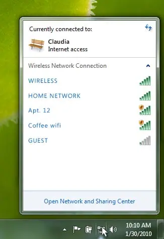 With Windows 7, setting up wireless connections is easier with consistent, one-click connections to available networks, whether those networks are based on Wi-Fi, mobile broadband, dial-up, or corporate VPN.